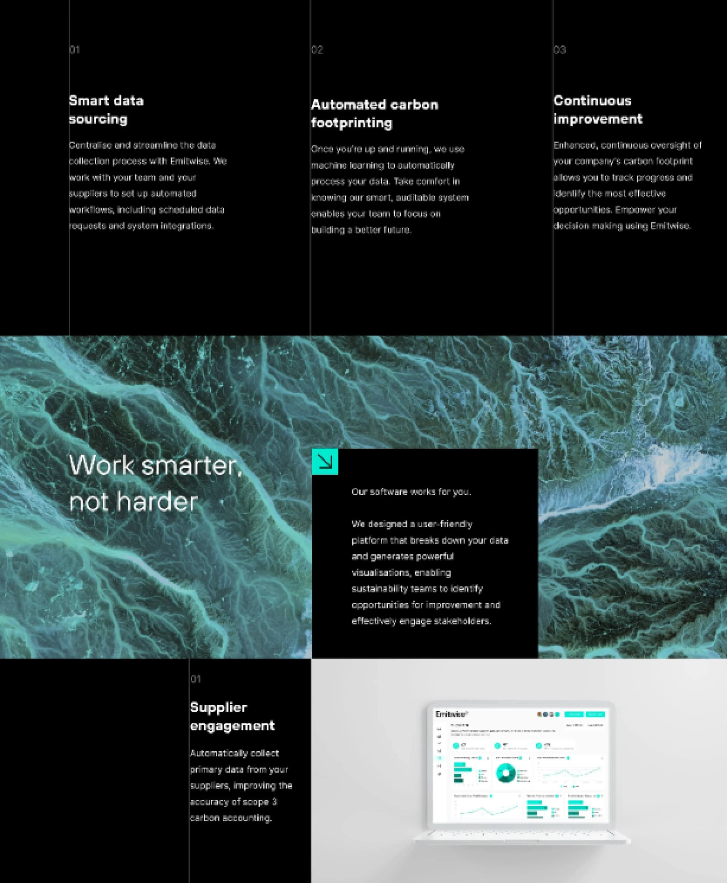 Emitwise is a carbon emissions management platform who needed a fresh brand and interactive design to stand out from the ever-crowded carbon emissions b2b landscape. Our improved brand and online presence helped establish them as a stronger player in the carbon-emissions space, and assisted in subsequent successful funding rounds.
