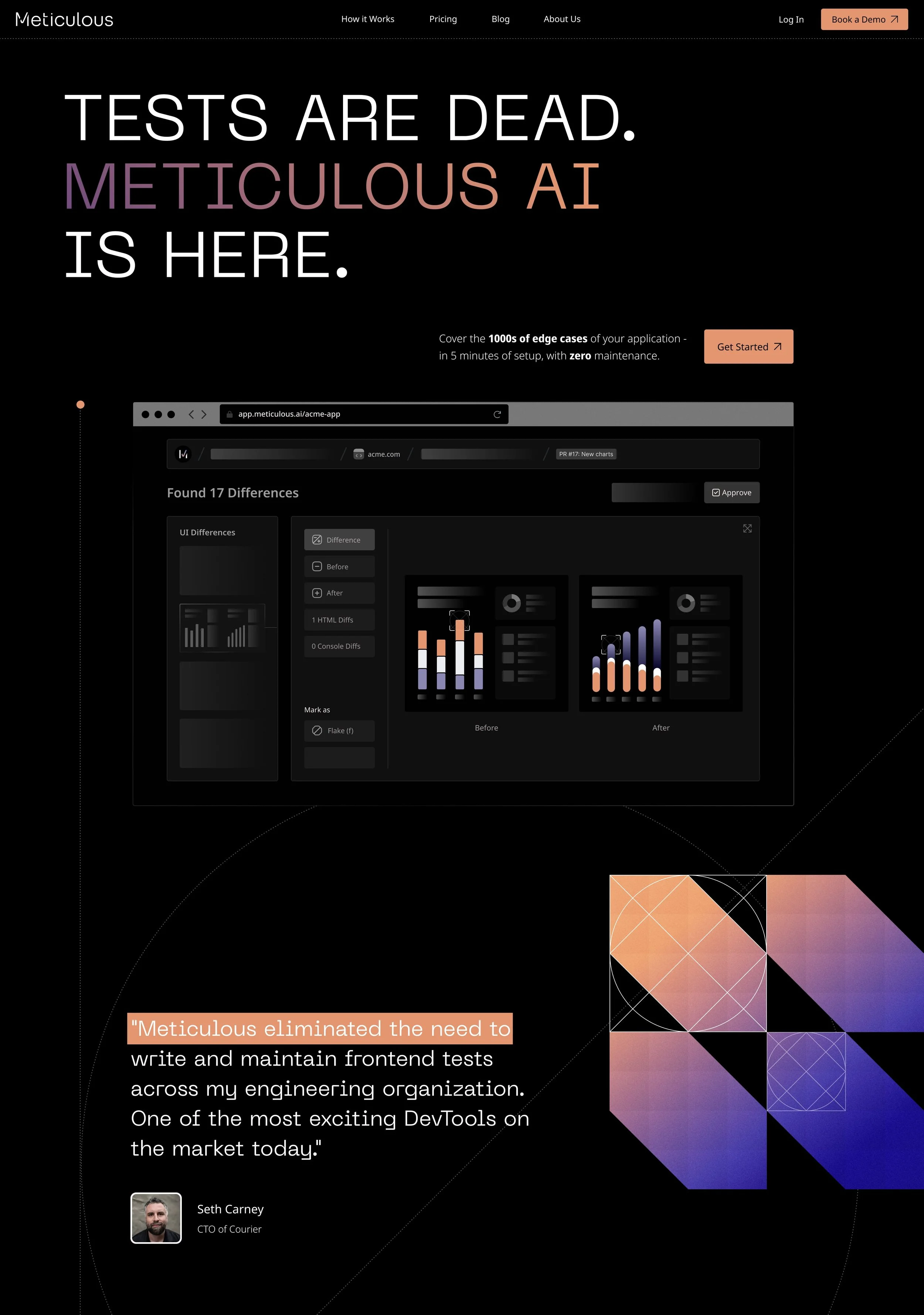 Our task was to add a professional b2b polish on Meticulous’ brand and site in order to elevate the brand’s trust level with their prospective clients.